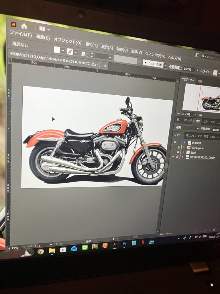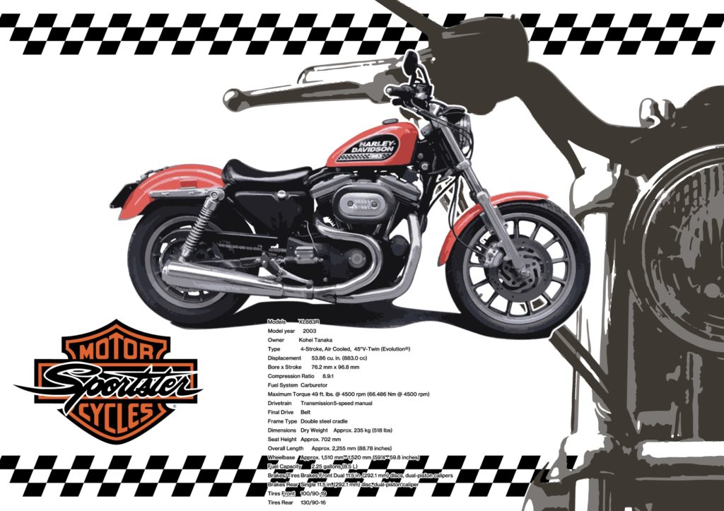 けれど悪くなさそう。色々こんなの作れたら楽しい。昔にディーラーとかで貼ってたポスターの【 SPORTSTER FAMILY 】みたいな。