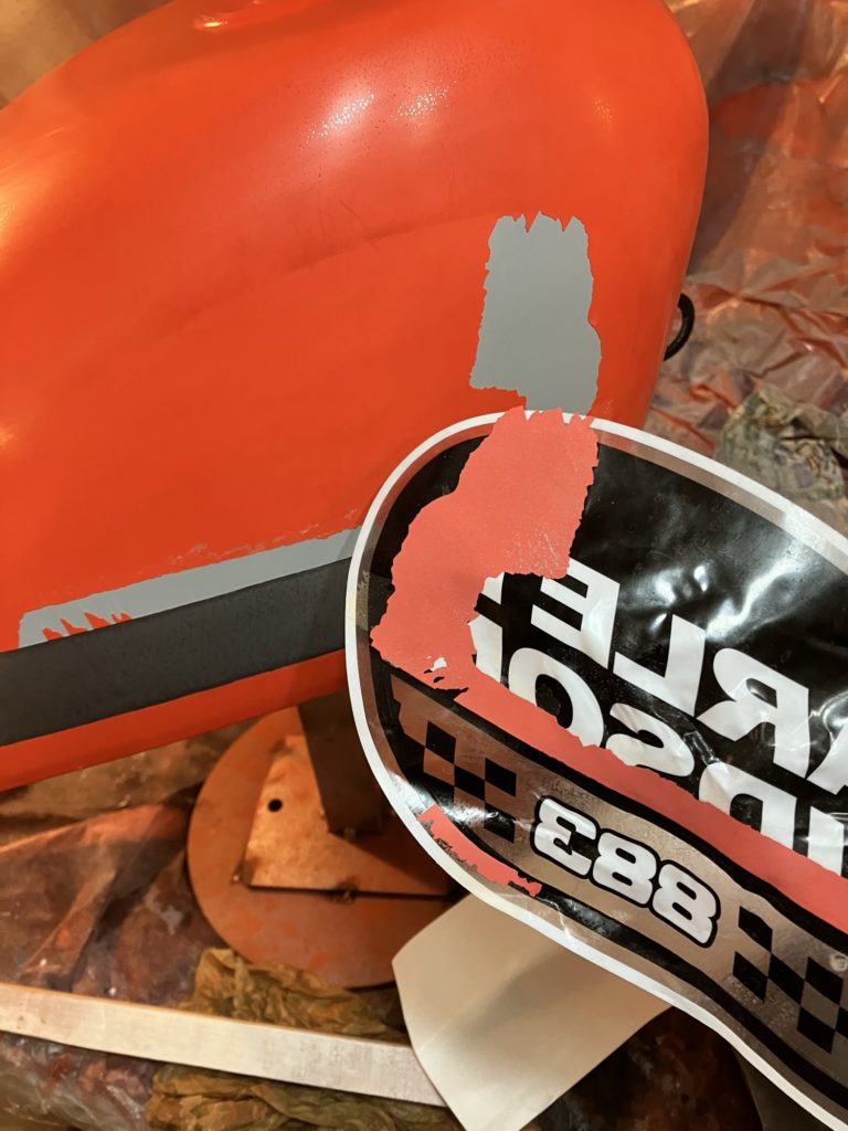 貼り直そうとしたステッカーが塗膜ごと持っていきやがったからな。あれは笑けた。塗装工程全てやり直し。そしてマスキングして塗り分け。